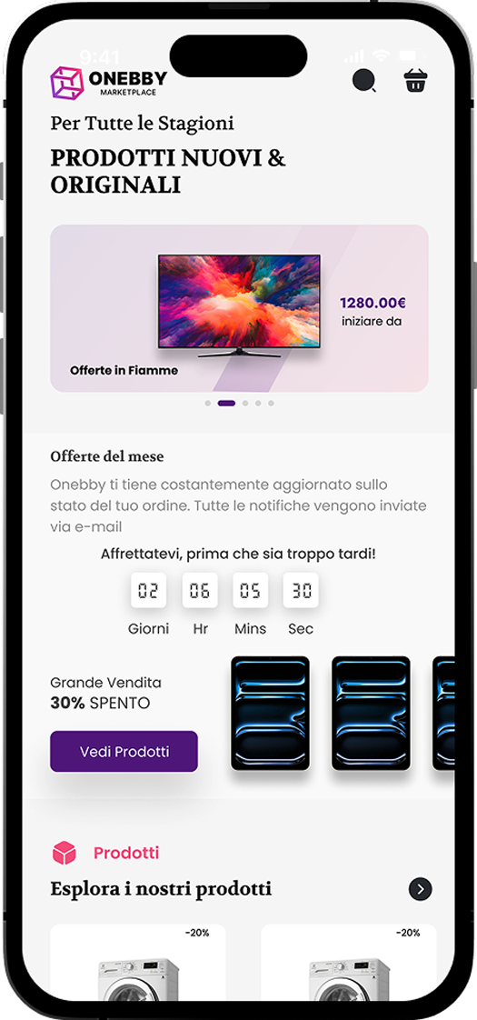 Onebby had earned its reputation as one of Italy's top 3 stores for low prices on appliances, telephony, and tech. But their existing platform couldn't keep up. A catalog of 20,000+ products, a demanding customer base, and the need to offer flexible payment options at checkout — all demanded something built from scratch.